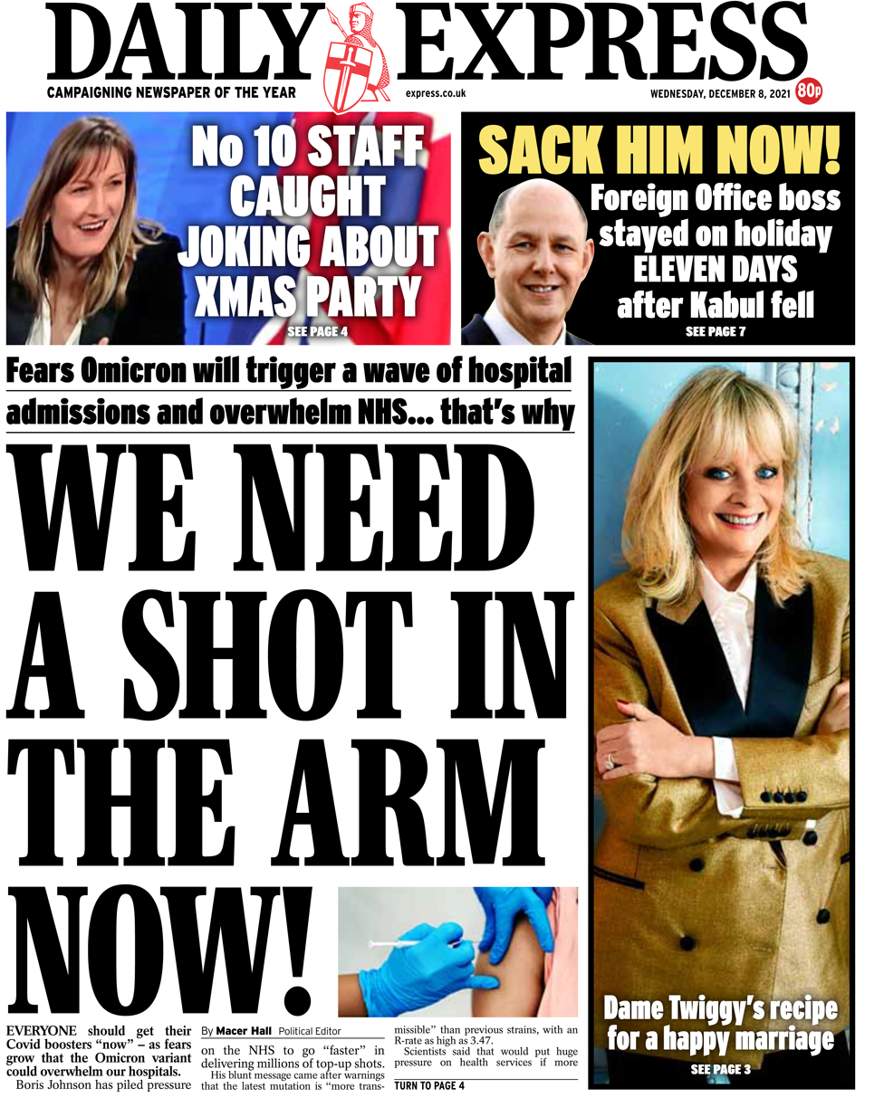 Times Radio breakfast presenter Stig Abell wrote on Twitter: “We were going to be talking to Sajid Javid on Times Radio about the booster campaign and the need to galvanise the country to fight Omicron. He is not coming on now presumably because he is not willing to defend the indefensible.”