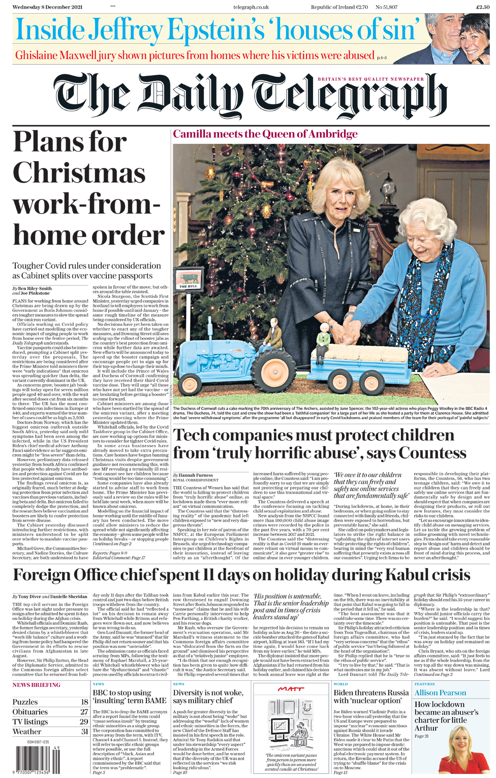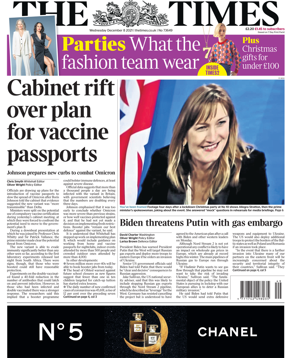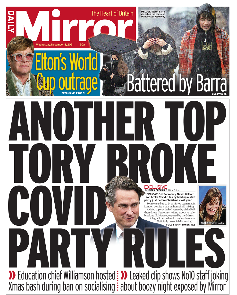 The issue also hit the front pages across the political spectrum from the Daily Mail to The Guardian – with the notable exception of The Sun which led on the fallout from Storm Arwen. The Telegraph updated its front page splash for its second edition.