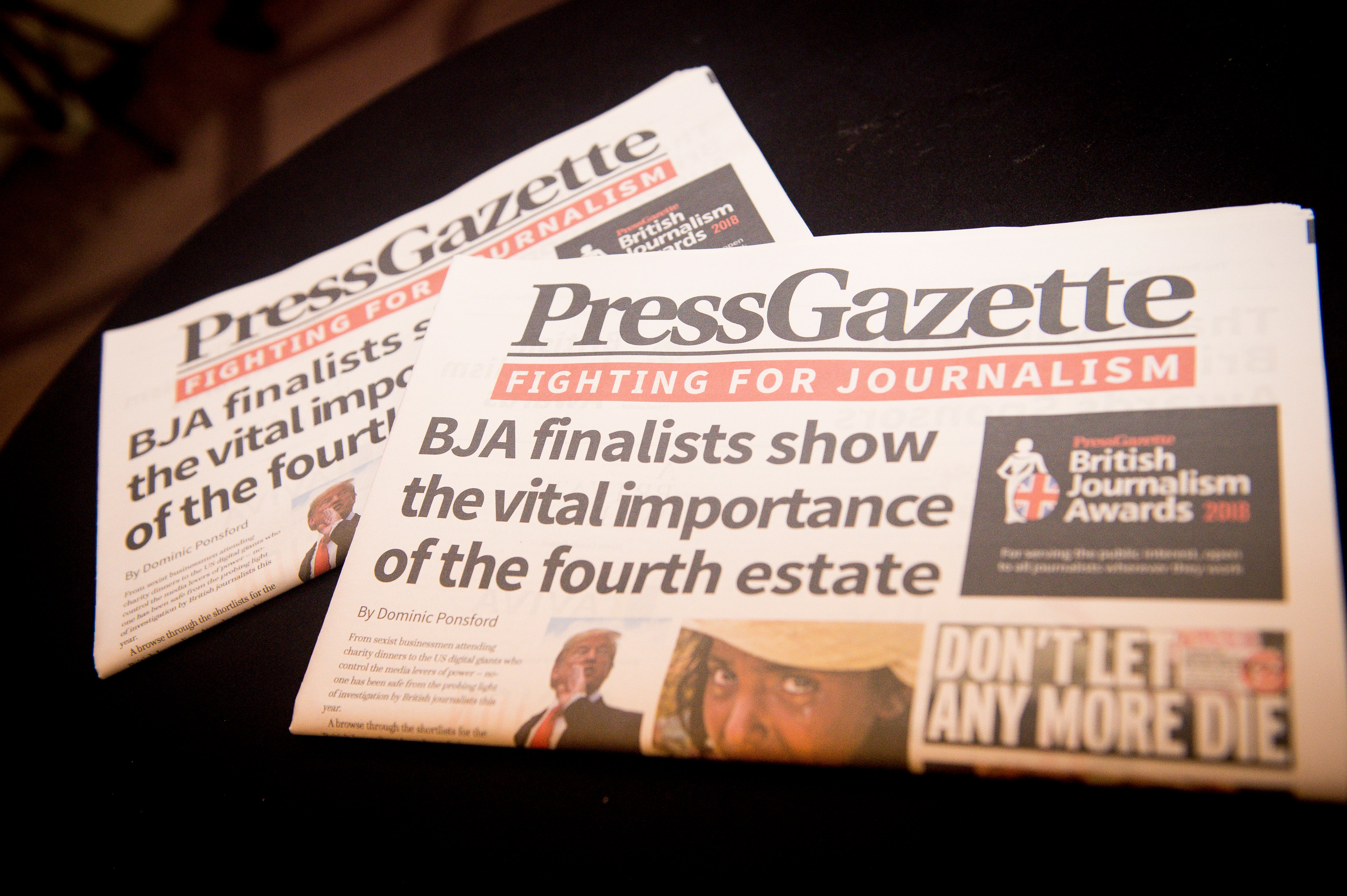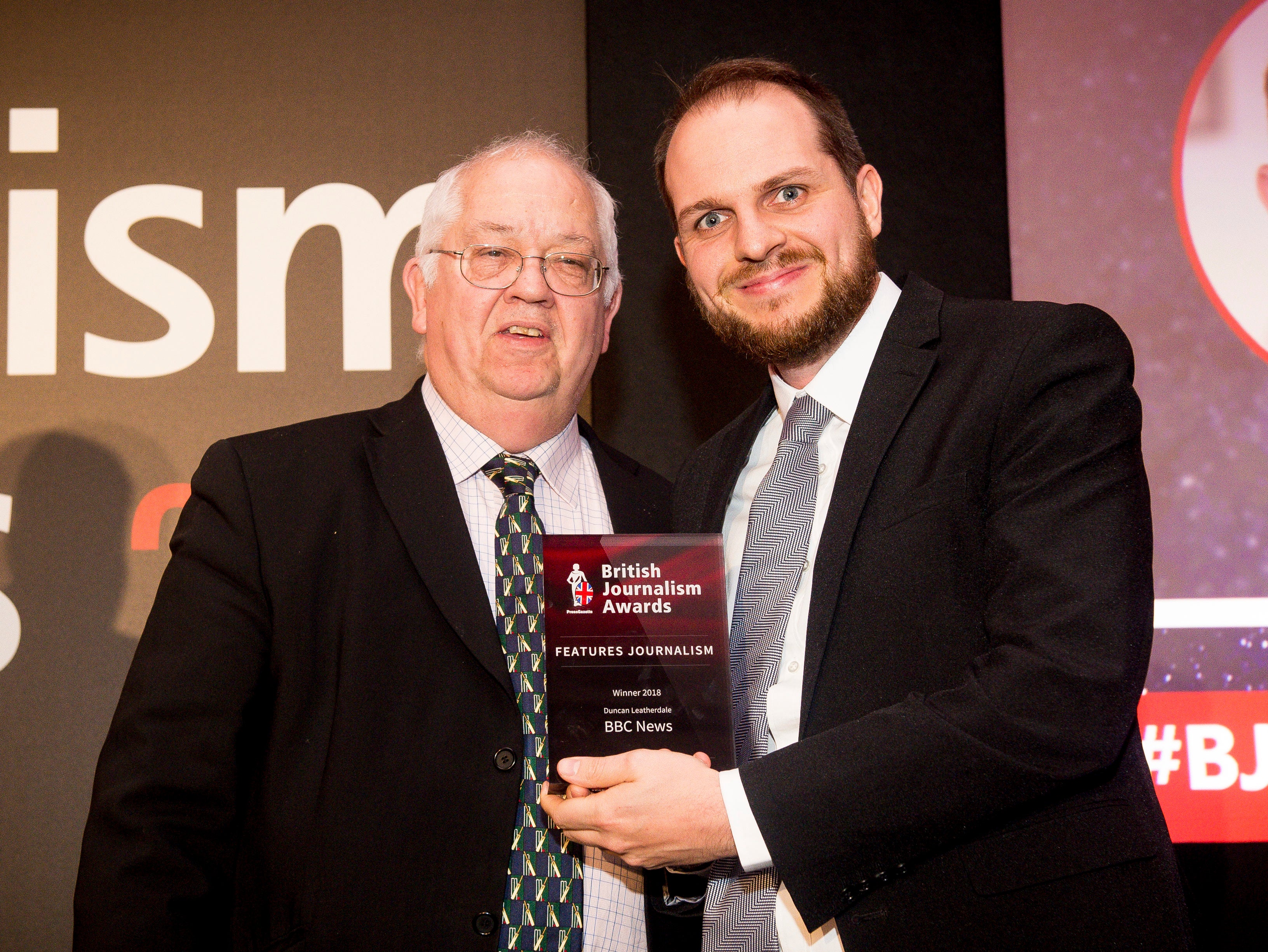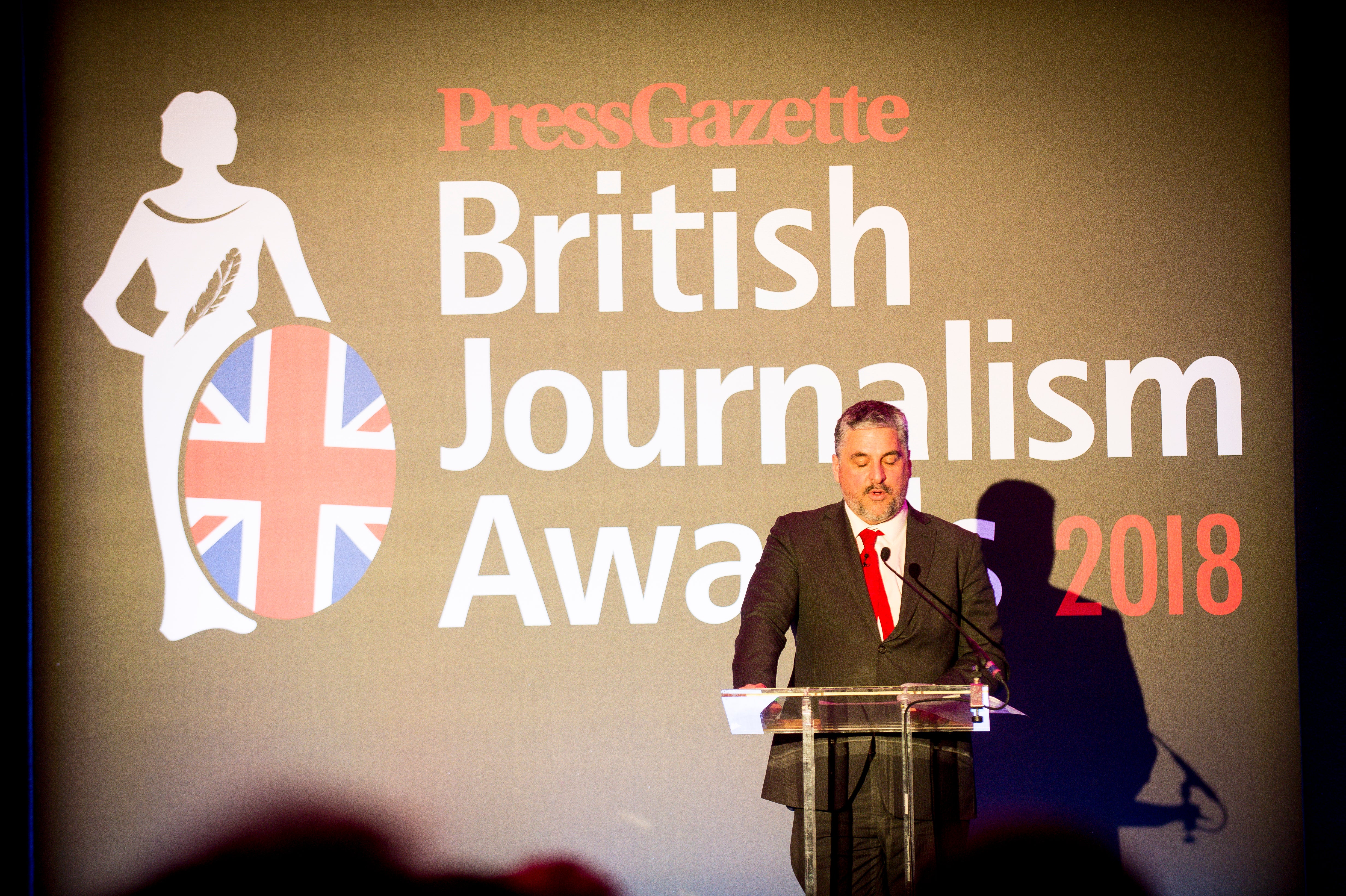 David Thompson collecting the Local Heroes award at the British Journalism Awards 2018. Picture: Press Gazette