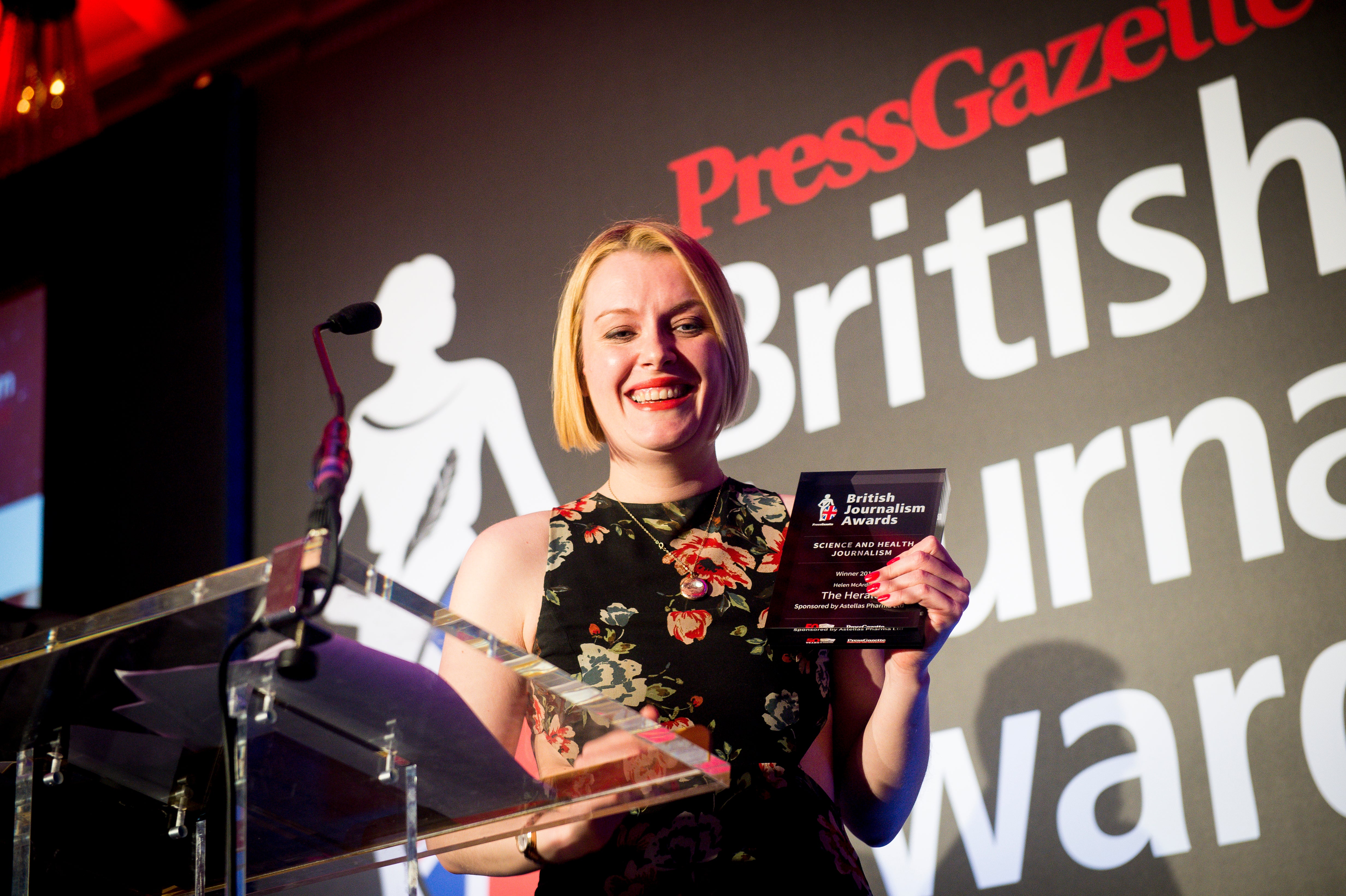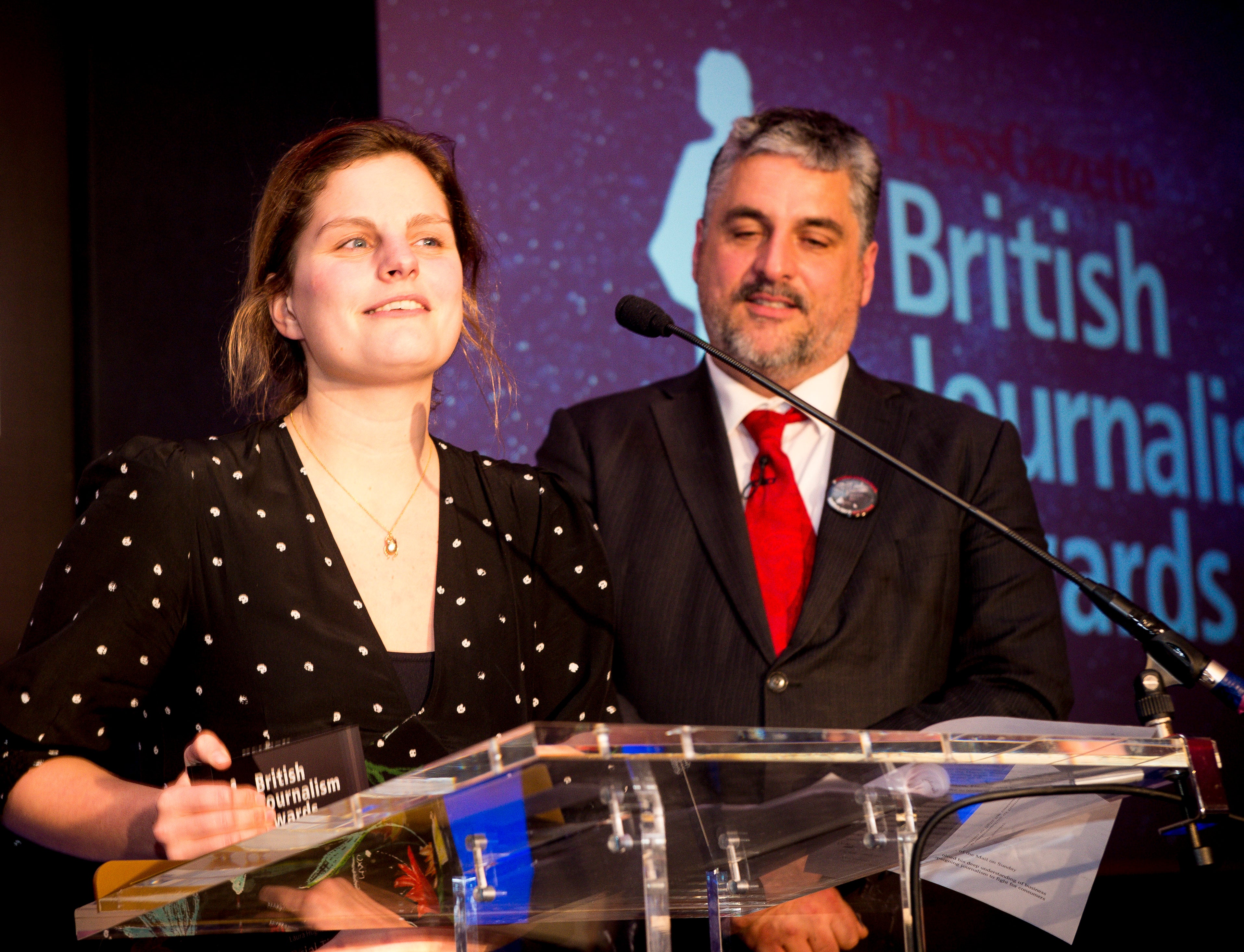 Laura Hughes speaks after winning the Politics Journalism award