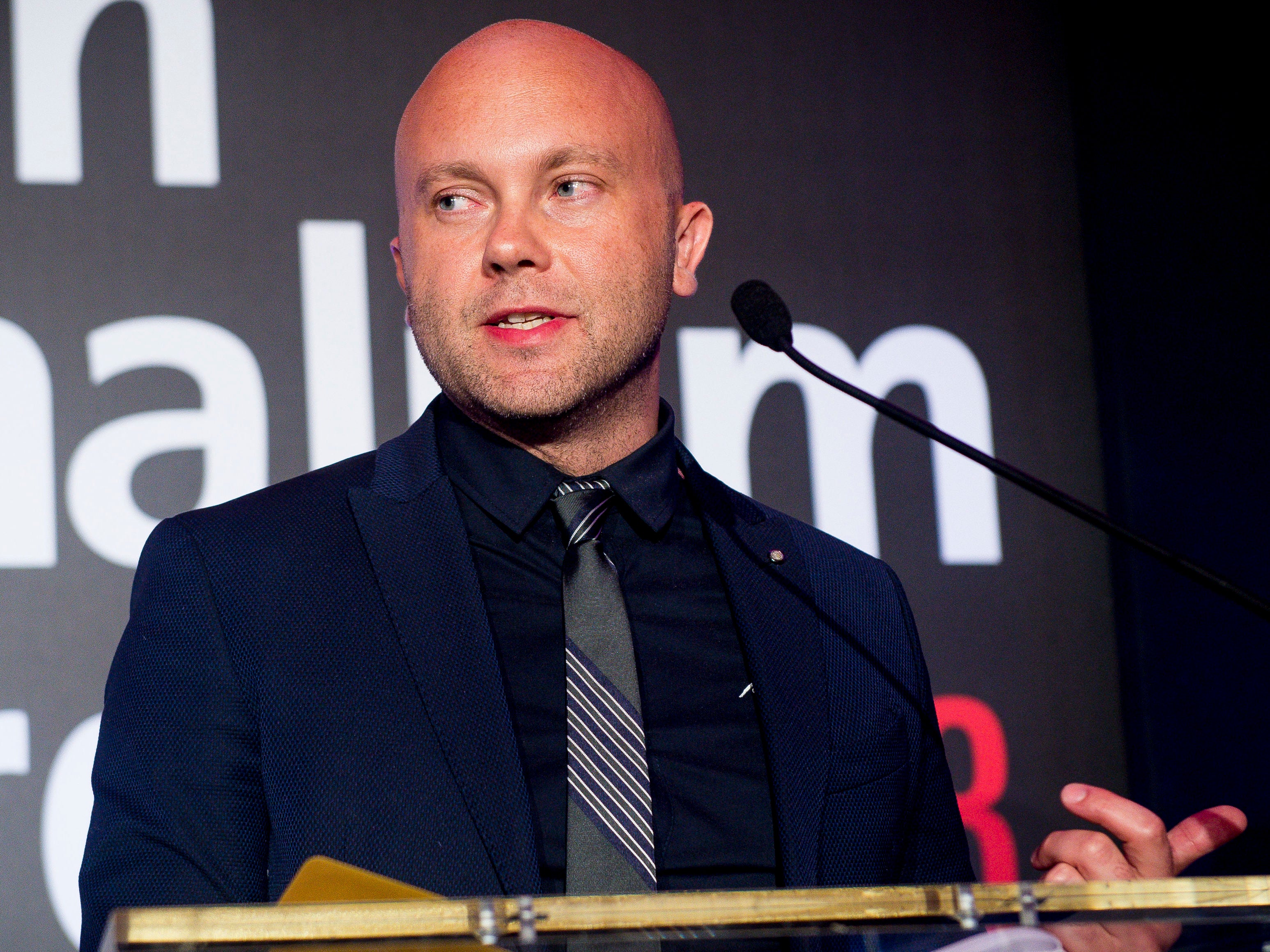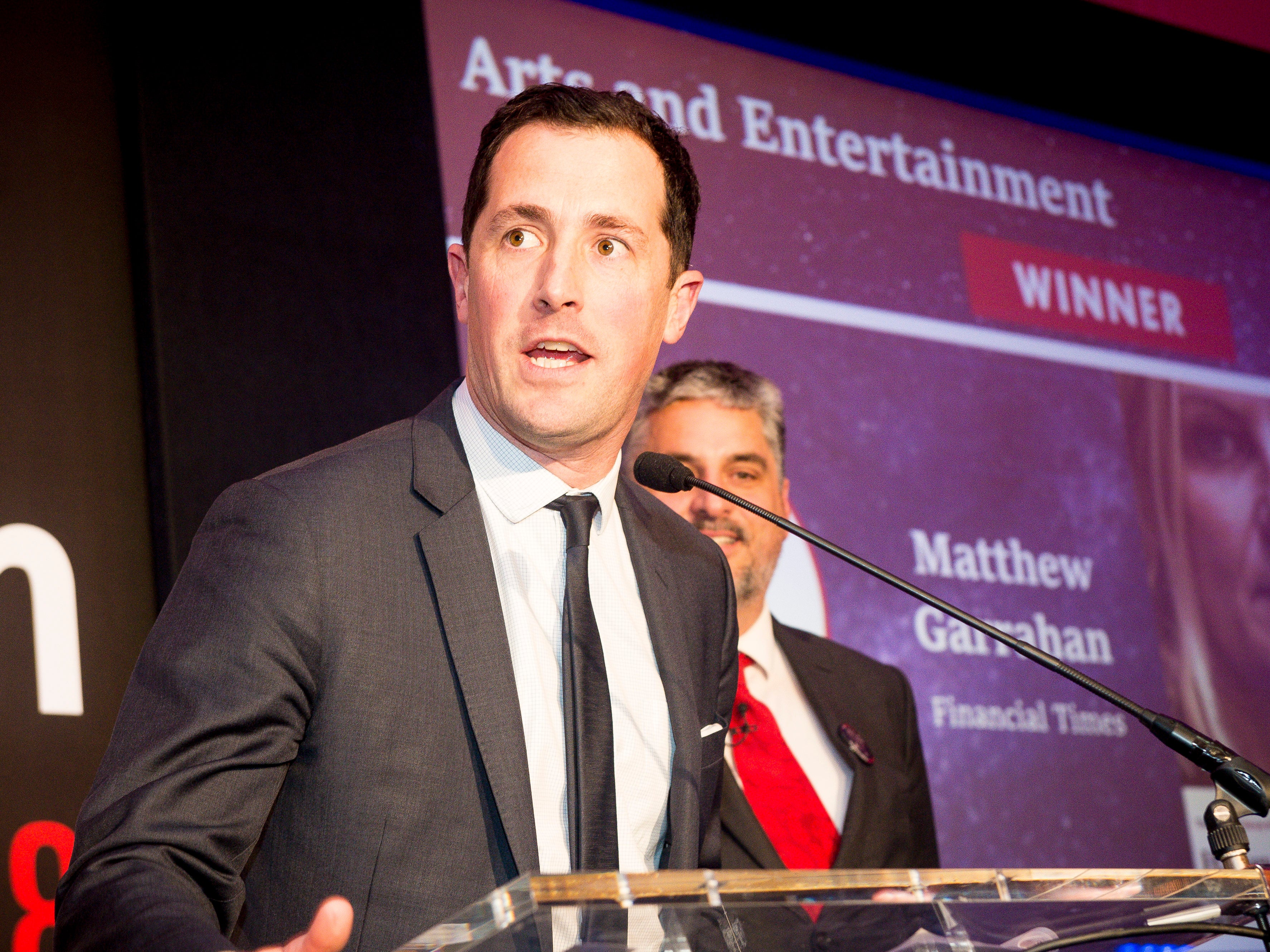 Matt Garrahan accepts the award for Arts and Entertainment Journalism